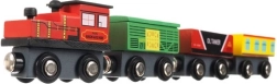 El set incluye 3 locomotoras y 9 vagones en varios colores, ofreciendo así una diversión variada.