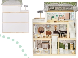La seguridad es lo primero: todos los bordes están suavemente lijados y la combinación de tablero MDF de alta calidad, uniones firmes y estructura estable garantiza una larga durabilidad. La paleta pastel y terrosa armoniza con los dormitorios infantiles modernos y convierte la casa en un elemento de diseño llamativo.