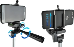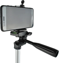 La rosca estándar de 1/4" permite montar cámaras, videocámaras digitales y teléfonos inteligentes en el trípode.