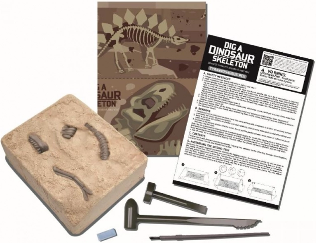 El set incluye un bloque de yeso con huesos, herramientas básicas de excavación y un manual. Solo hay que abrir la caja y empezar a explorar: una actividad ideal para la tarde o el fin de semana.