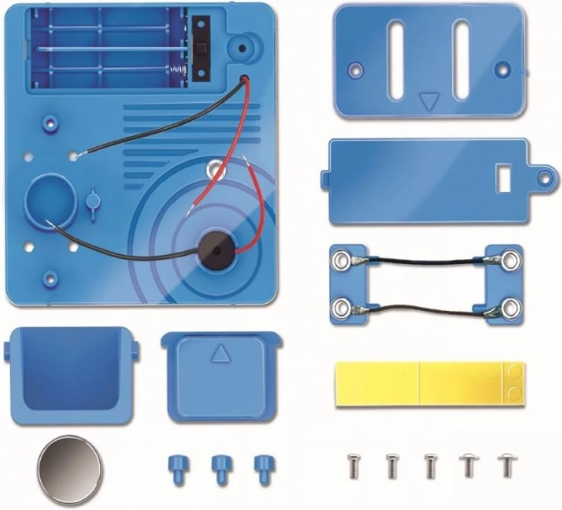 Construye tu propia alarma magnética y descubre cómo funciona un circuito eléctrico y un interruptor magnético. Gracias a su diseño sencillo y a sus piezas claras, es ideal para niños que quieren combinar diversión y aprendizaje.