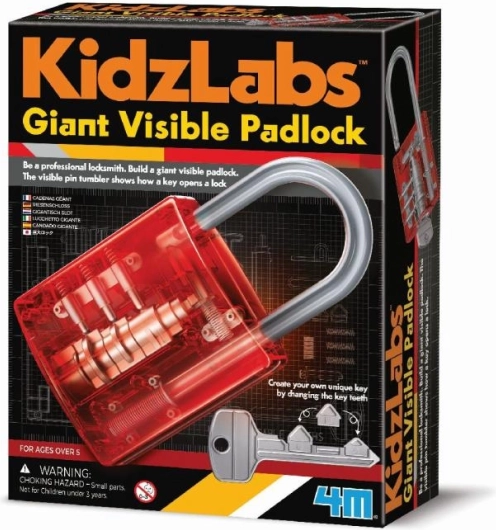 Sumérgete en el mundo de la mecánica con el gran candado transparente de KidzLabs. Este candado no solo proporciona diversión, sino también aprendizaje para niños a partir de 5 años. El visualmente atractivo candado de plástico rojo transparente permite a los niños ver todo el mecanismo interno y así aprender cómo funcionan los candados. Ideal para pequeños exploradores.