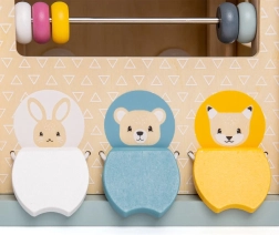 Los suaves tonos pastel y el acabado liso invitan a jugar una y otra vez, mientras que las variadas actividades fomentan diferentes habilidades, desde la motricidad fina hasta el desarrollo del lenguaje. La certificación FSC garantiza el origen responsable de la madera y una producción respetuosa.