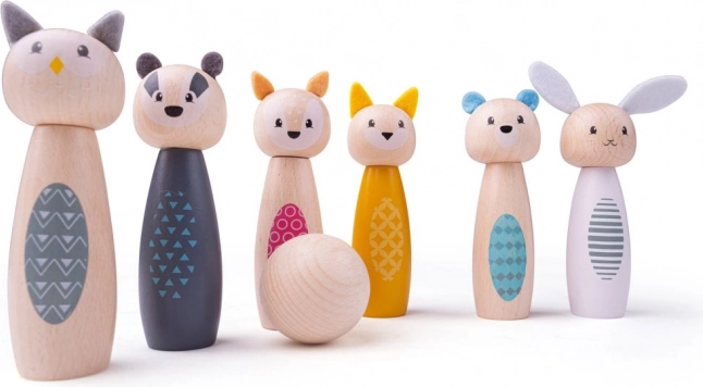 Haz felices a los niños con un elegante set de bolos con adorables animalitos: lechuza, tejón, ciervo, gato, oso y conejo. Las figuras de colores vivos, hechas de madera certificada FSC de alta calidad, son lisas, agradables al tacto y resistentes al juego diario. El set es apto para jugar en casa tanto sobre alfombra como en suelos lisos.