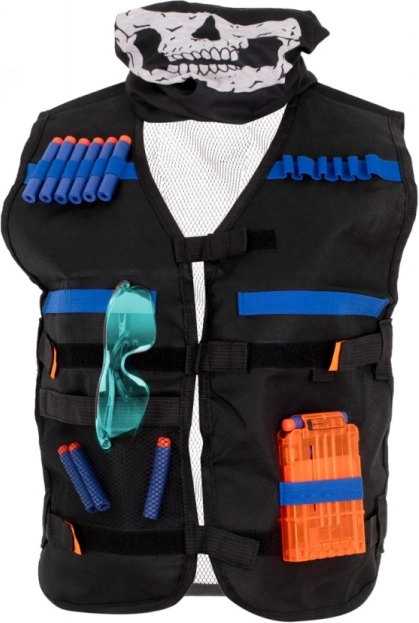 Este ligero chaleco táctico convierte cualquier juego con lanzador de dardos de espuma en una diversión aún mayor. Gracias a los prácticos soportes, bandas elásticas, bolsillo para dardos y soporte para cargador, siempre tendrás la munición a mano y la acción podrá continuar sin interrupciones.