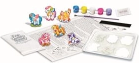 En este set creativo puedes moldear y pintar figuras de yeso. El producto incluye todo lo necesario para fabricar imanes o broches con forma de unicornios.
