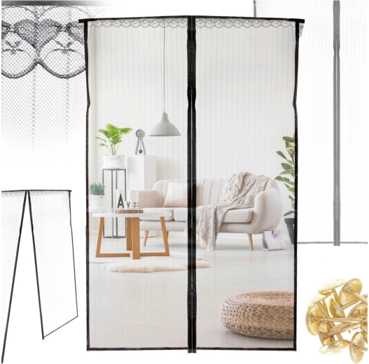 Disfruta de la ventilación sin visitantes no deseados. La malla fina deja pasar la luz y el aire, pero impide la entrada de moscas, mosquitos y otros insectos. Las dos partes se unen en el centro mediante imanes, por lo que se cierran solas tras el paso: ideal para el hogar, el balcón o la terraza.