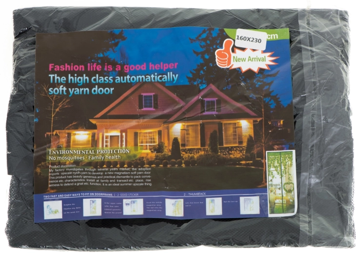 La instalación se realiza en un momento: fija la mosquitera al marco de la puerta con las chinchetas incluidas. Durante la temporada funciona a diario sin preocupaciones y, fuera de temporada, puedes retirarla y lavarla a mano a 30 °C. El diseño minimalista en negro combina con la mayoría de interiores y exteriores.