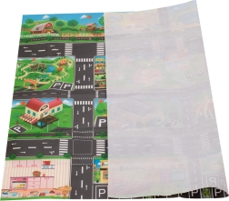 La gran alfombra impermeable para niños con estampado de ciudad es ideal para el juego creativo. Está fabricada en plástico, similar al hule, lo que facilita su mantenimiento y limpieza. Gracias a su bajo peso y posibilidad de plegado, se puede transportar fácilmente y usar también fuera de casa, por ejemplo, en un picnic.