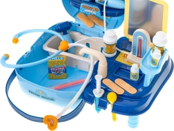 Set de doctor para niños en un práctico maletín que convierte cualquier juego en una consulta médica. Juguete creativo que ayuda a los niños a aprender herramientas y procedimientos médicos básicos. Gracias al maletín portátil, los niños pueden jugar al doctor en casa o en casa de amigos.