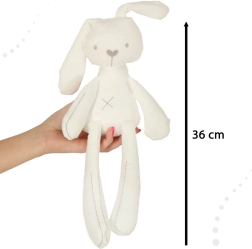 Este conejo está hecho de algodón suave, lo que garantiza confort tanto al jugar como al dormir.
