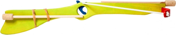 Esta gran ballesta verde de madera maciza ofrece mucha diversión a los niños en casa y en el jardín. Gracias a su superficie cuidadosamente pulida y a los bordes redondeados, el juego es seguro y cómodo. El sencillo mecanismo de resorte/elástico ayuda a los niños a practicar la puntería y el control de la fuerza.