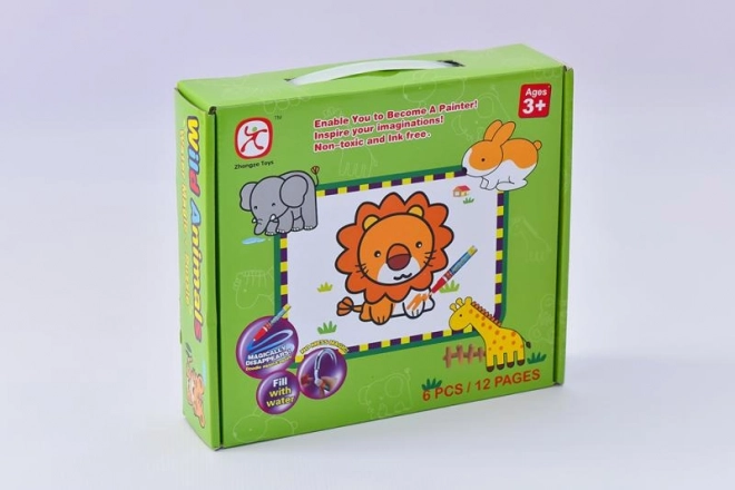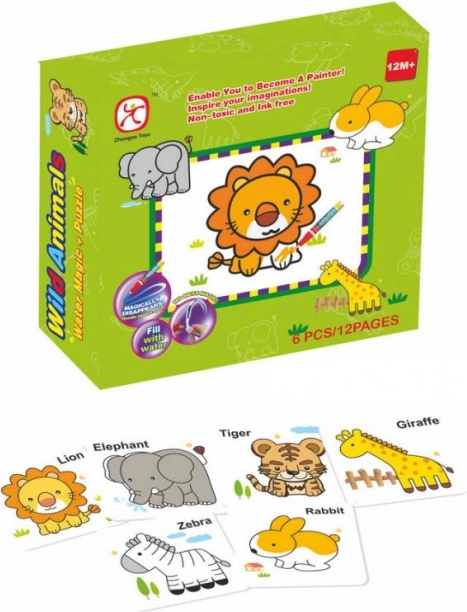 El puzzle de encaje Animales con pintura de agua es la combinación ideal para desarrollar la imaginación y la motricidad fina. Los niños podrán disfrutar de seis imágenes diferentes: conejo, elefante, jirafa, león, cebra y tigre.