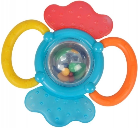 - Sonidos divertidos: Las pequeñas cuentas de colores en el centro del sonajero proporcionan estimulación sonora.