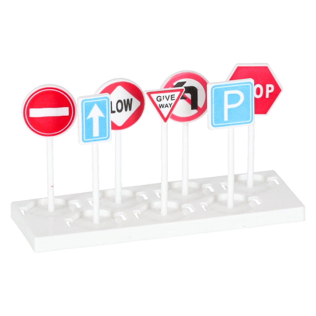 - Avión de transporte, 3 vehículos de construcción (excavadora, hormigonera, bulldozer), 7 señales de tráfico