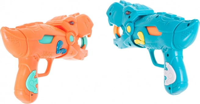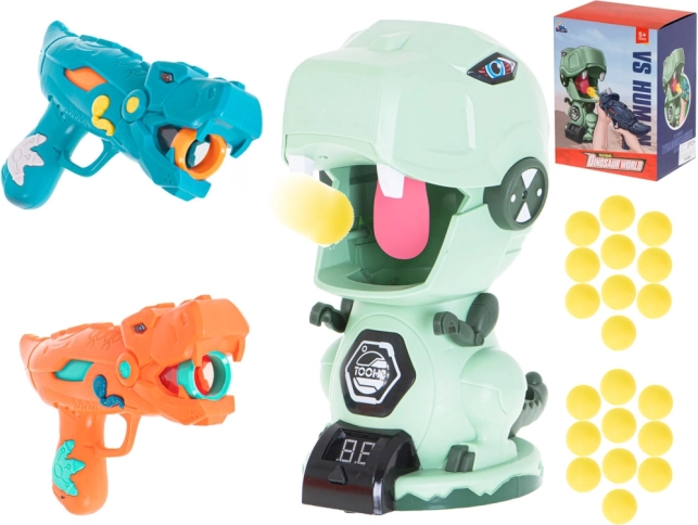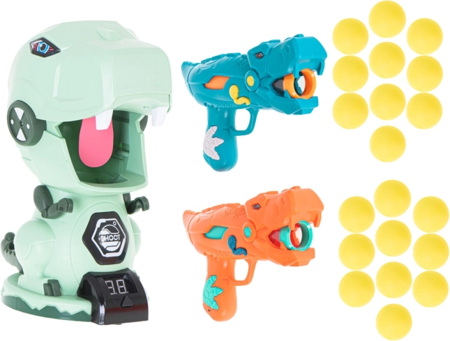 Dos pistolas con estilo en forma de dinosaurio permiten disparar suaves bolitas de espuma de forma segura y eficaz. Ideal para juegos en pareja y competiciones.