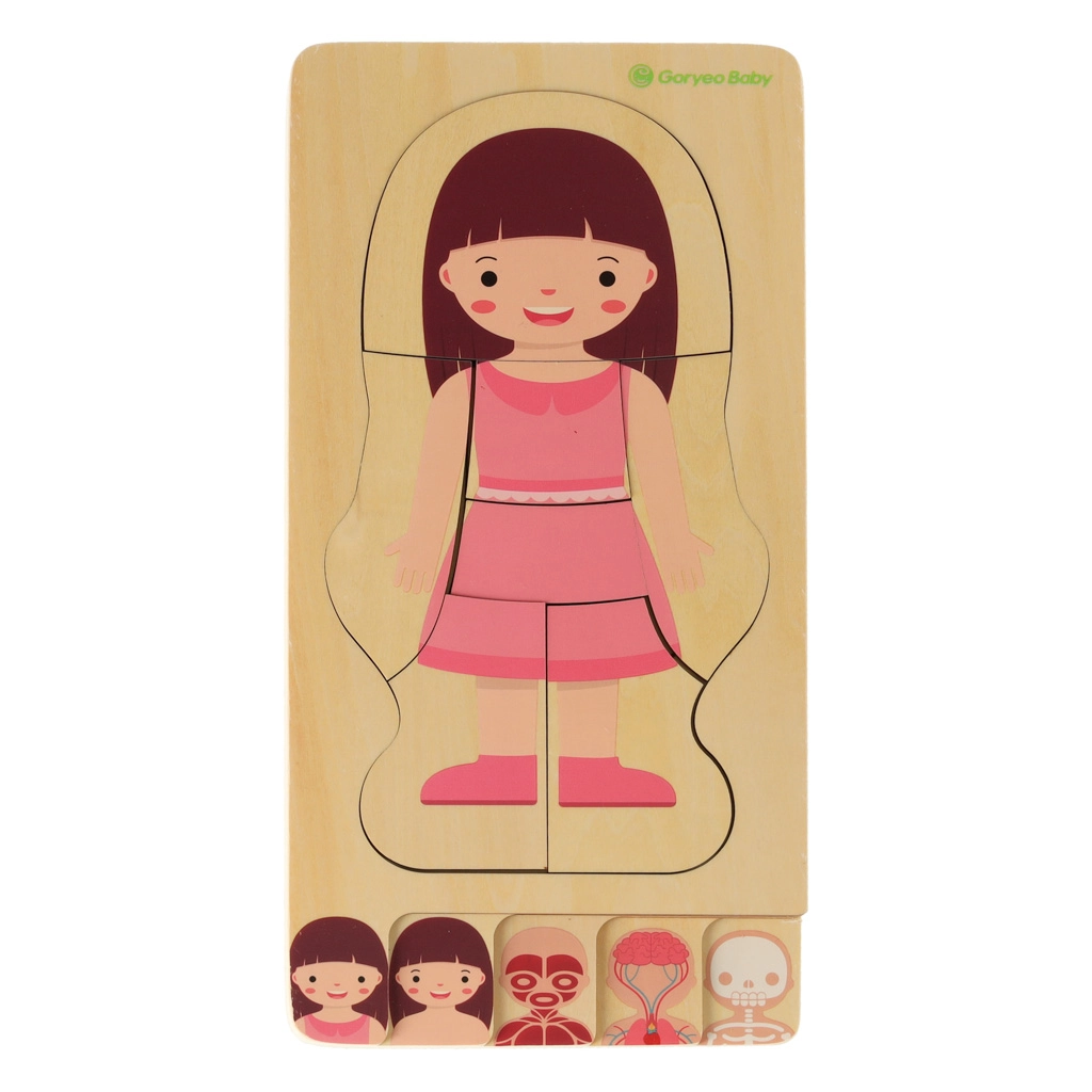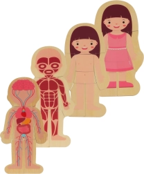 Este rompecabezas de madera de calidad guía a los niños a descubrir cómo está estructurado el cuerpo humano. Los pequeños exploradores colocan las capas en el orden: esqueleto → órganos → músculos → cuerpo → ropa. Así surge una representación clara del cuerpo humano que fomenta la curiosidad y el aprendizaje natural sin presión.