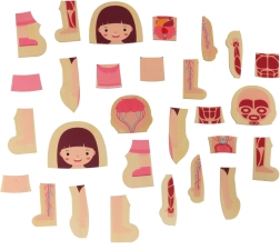 Las piezas de colores muestran las distintas partes del cuerpo de manera clara y atractiva. Fomentan el vocabulario, la concentración y la curiosidad.