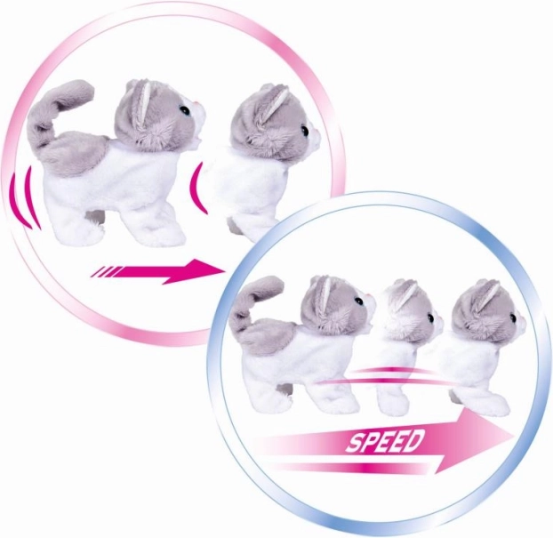 Una adorable gatita interactiva de suave peluche que alegrará a cualquier niño. Se mueve a dos velocidades, menea la cola y emite sonidos divertidos. El compañero ideal para jugar y acurrucarse a diario.
