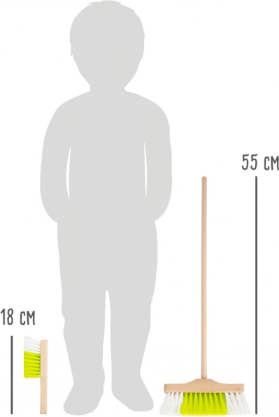 La escoba de 55 cm y el cepillo de 18 cm se adaptan perfectamente a las manos de los niños, por lo que son fáciles de manejar y hacen que la limpieza sea natural y divertida para ellos.