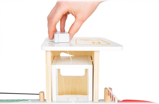 Este aparcamiento prémium de contrachapado de madera de alta calidad ofrece tres plantas bien equipadas conectadas por un ascensor funcional y dos rampas fluidas. Los niños pueden aparcar, repostar, cargar, lavar y reparar: todo en un solo lugar, con elementos realistas y una gran jugabilidad.