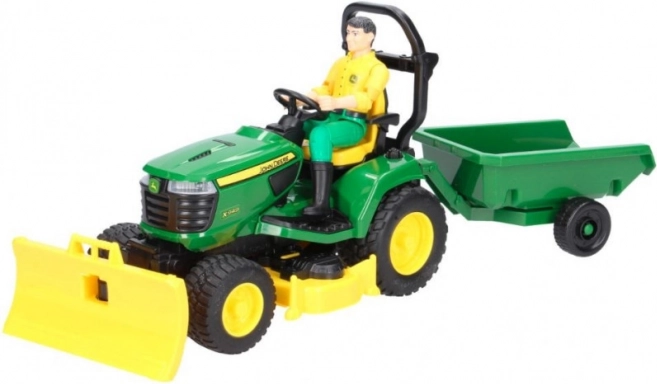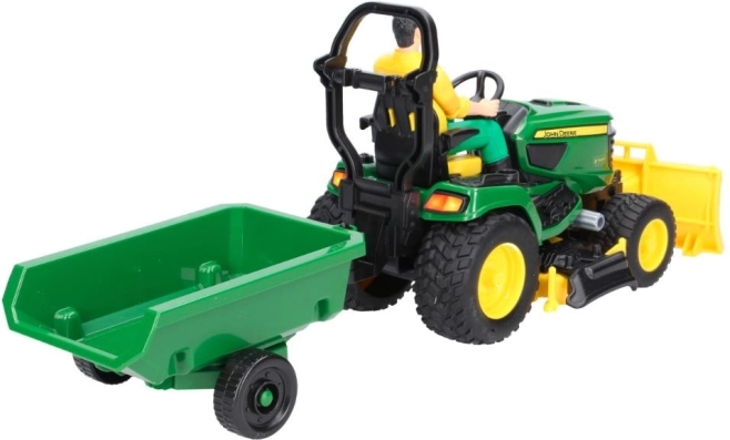 Amplía tu mundo de juego con el detallado tractor de jardín JOHN DEERE X949 de la marca BRUDER. Gracias a la hoja frontal funcional, la unidad de corte y el remolque basculante, los niños pueden imitar fácilmente los trabajos reales del jardín: desde empujar hojas hasta “cortar” el césped y transportar materiales.