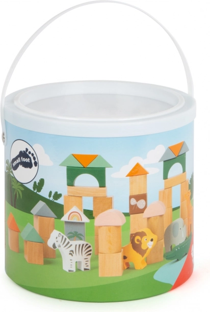 El set de bloques de construcción de madera Safari es un juguete perfecto para pequeños exploradores. Contiene 50 piezas de bloques en diversas formas y colores, que incluyen tonos pastel y madera natural. El paquete también incluye 5 figuras de animales del safari, entre ellos cebra, león, jirafa, elefante y cocodrilo. Estos elementos ofrecen innumerables posibilidades para construcciones creativas. La creatividad no tiene límites: construye casitas para los animalitos y crea tus propias historias.