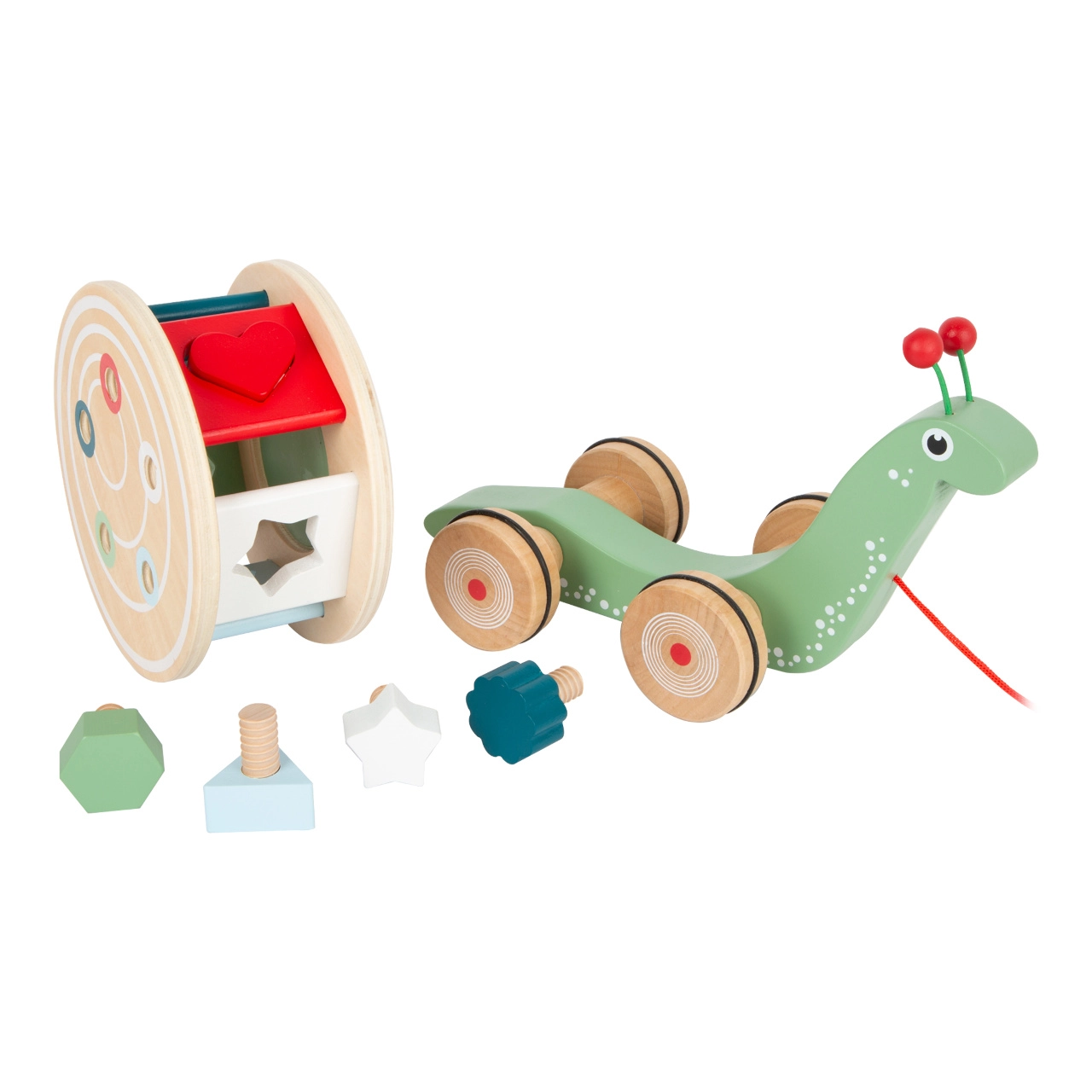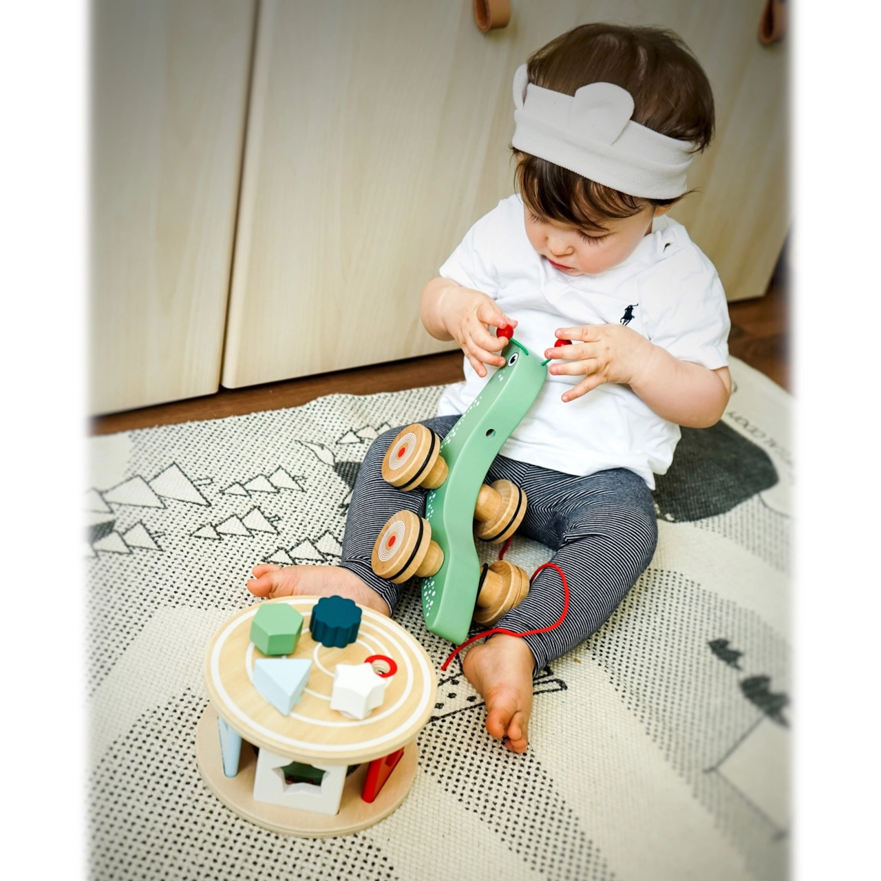 Te presentamos un adorable caracol de madera con cuerda que no solo entretiene, sino que también ayuda al desarrollo de tu hijo. Gracias a su ligereza y a sus ruedas de giro suave, es ideal para los niños que comienzan a caminar y apoya su coordinación y equilibrio. Además, el caracol funciona como clasificador con cinco formas diferentes, lo que estimula las capacidades cognitivas y la motricidad fina.