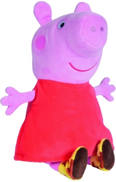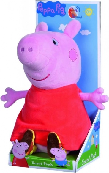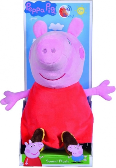 La querida protagonista de la serie Peppa Pig como amiga de peluche con sonido. Solo hay que presionar suavemente la barriga y Peppa emitirá sonidos divertidos que fomentan la alegría del juego y estimulan la imaginación infantil. El material suave es delicado con la piel de los niños e invita a abrazarla.