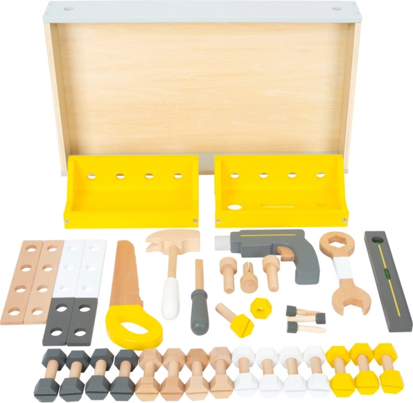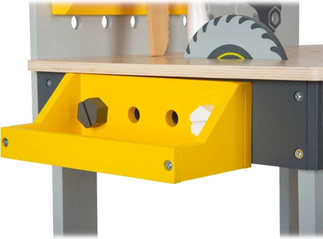 La mesa de trabajo infantil Miniwob ofrece a los pequeños manitas infinitas posibilidades para desarrollar sus habilidades. Equipada con diversas herramientas como una sierra circular, un destornillador eléctrico y un martillo, este banco es ideal para el juego creativo y la mejora de la motricidad fina.