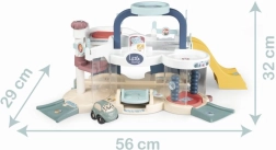 Smoby Little mi primer garaje es un juguete asombroso lleno de funciones divertidas diseñadas para los más pequeños. El garaje incluye un ascensor mágico, un lavadero de coches con cepillos giratorios, una gasolinera, un helipuerto y mucho más, lo que permite a los niños desarrollar su imaginación y coordinación al jugar con acciones terrestres y aéreas.