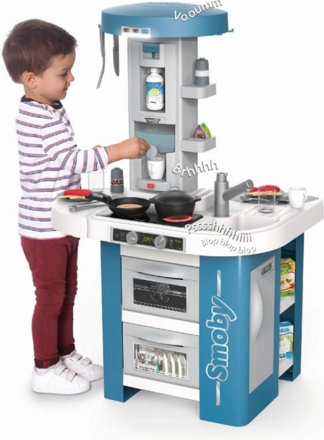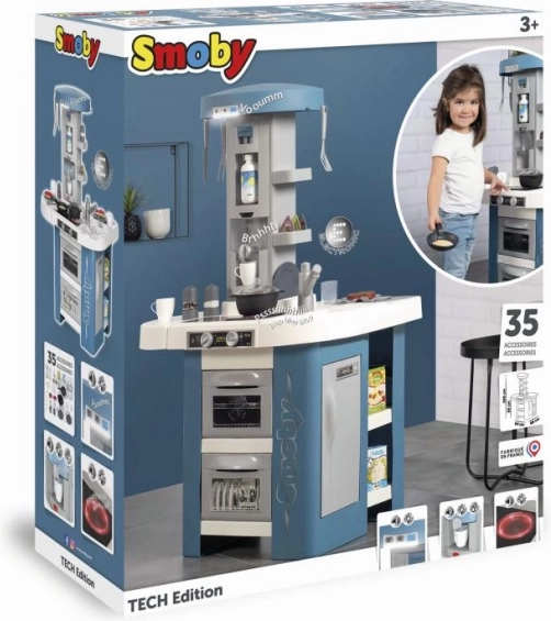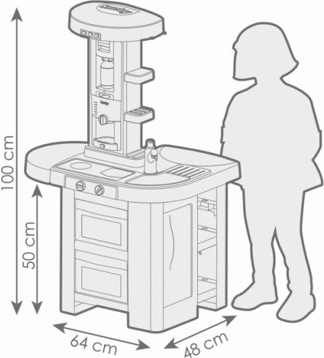Bienvenido al mundo del juego de cocinar con la cocina Smoby Studio Tech Edition. Esta cocina compacta y estable ofrece una amplia zona de juego que permite a los niños explorar su creatividad culinaria desde todos los lados.