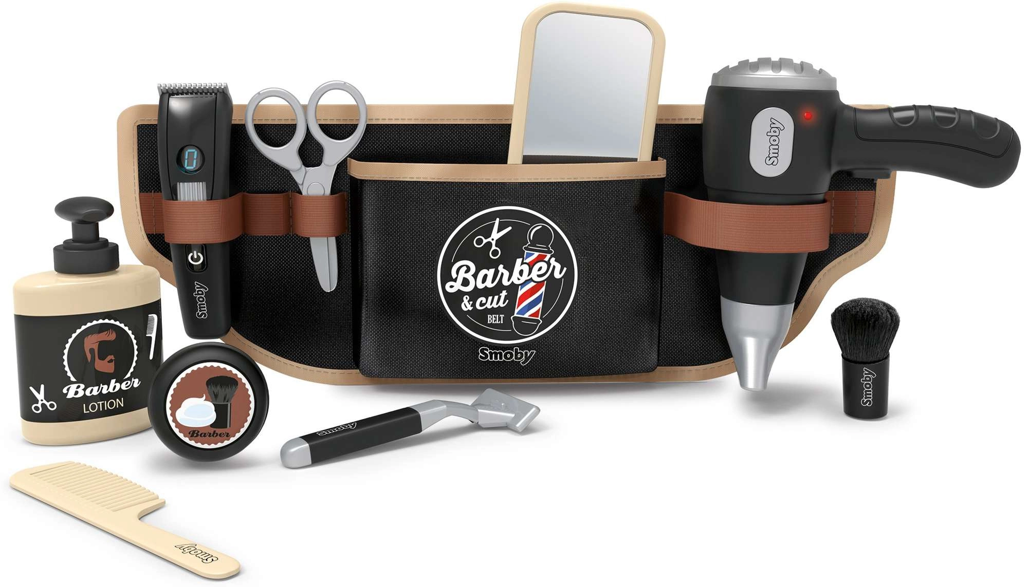 El cinturón de peluquería para niños Smoby myBeauty convierte cada día en una divertida aventura de salón. Gracias al cinturón ajustable, los niños tienen todas las herramientas guardadas de forma segura y siempre a mano: desde el secador hasta las tijeras, el peine y la maquinilla de afeitar. El secador interactivo emite sonidos realistas, haciendo que el juego parezca de verdad.