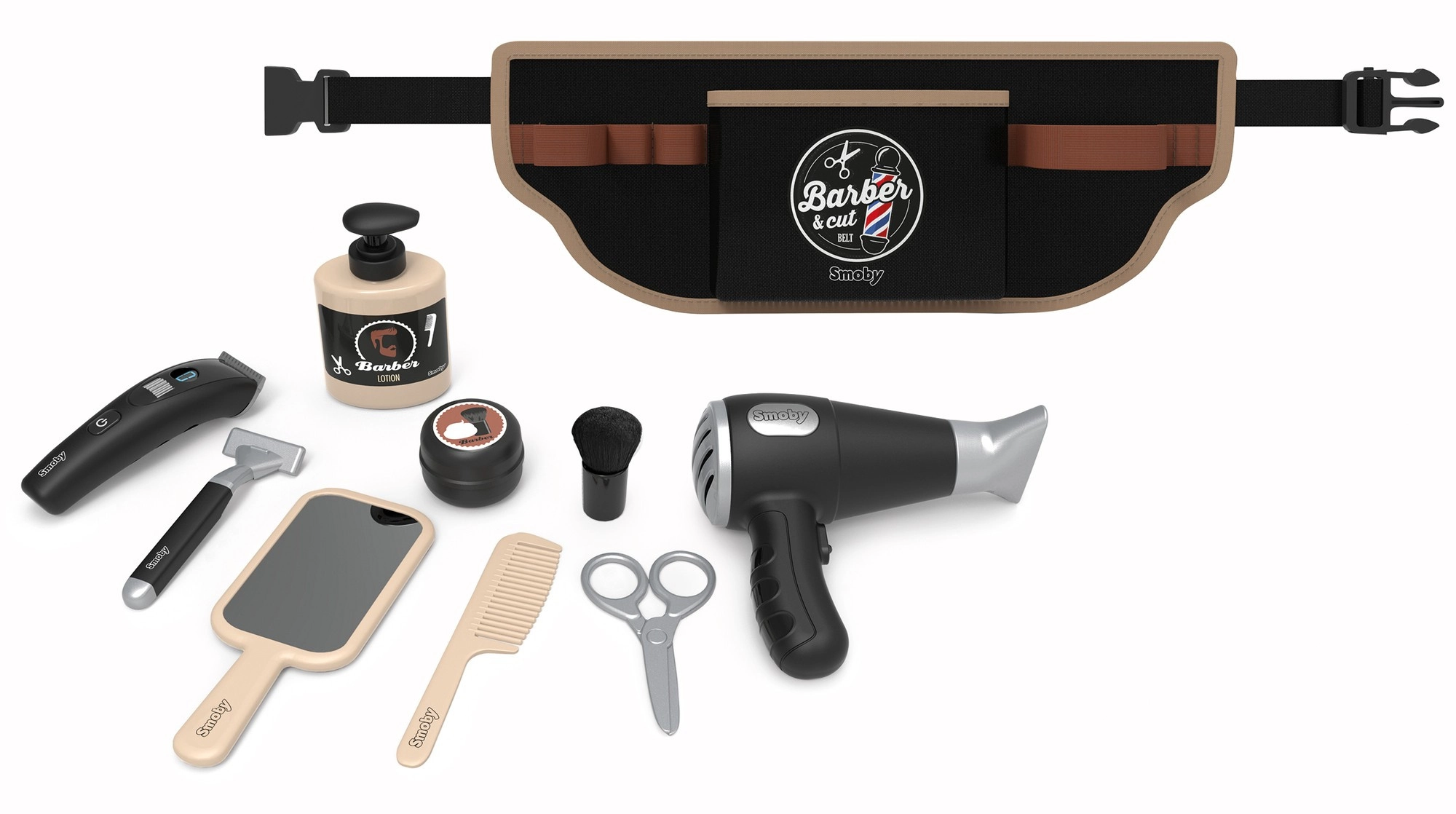 Descubre el juego creativo con el cinturón de peluquería Smoby myBeauty para pequeños estilistas. El cinturón se lleva cómodamente en la cintura y mantiene todas las herramientas a mano. Incluye 10 accesorios, entre ellos un secador interactivo con sonidos realistas, tijeras, peine, espejo y más. Ideal para el desarrollo de la imaginación, la motricidad fina y el juego de roles a partir de 3 años.