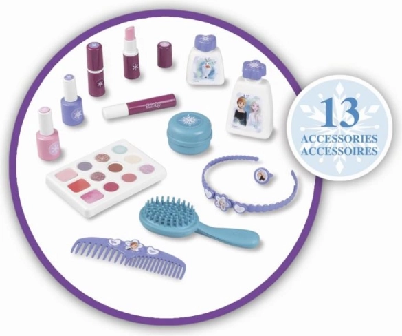 Este set de belleza de la colección Frozen es perfecto para los peques a los que les encanta probar cosas nuevas y crear diferentes looks con estilo. Gracias a sus dimensiones compactas y a su práctica asa, el maletín se puede llevar a cualquier parte. Contiene: