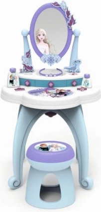 Sumérgete en el mundo mágico del Reino de Hielo con este elegante tocador 2 en 1. Su hermoso diseño en los colores de Elsa y Anna transformará cualquier habitación en una estancia palaciega.