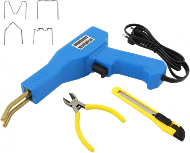 La soldadora de plástico está diseñada para cubrir todas sus necesidades de reparación de materiales plásticos y sellado de grietas. El set incluye 200 grapas de acero en cuatro tipos, 50 unidades de cada una, destinadas a diferentes aplicaciones.