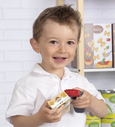El escáner manual emite efectos auténticos de luz y sonido, de modo que cada “bip” del producto se siente como en una caja registradora de verdad. Ideal para desarrollar la motricidad fina y la concentración.