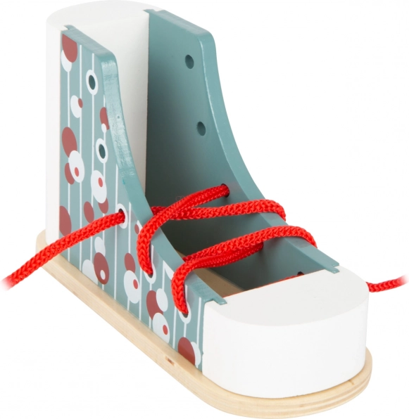 Este juguete de madera está diseñado para facilitar a los niños el aprendizaje de cómo atarse los cordones gracias a su aspecto realista y a su diseño divertido.