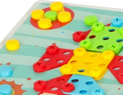 El gran conjunto de tornillos de colores, placas y piezas con diferentes formas despierta la creatividad y fomenta la creación independiente de mosaicos y modelos.