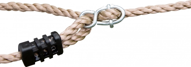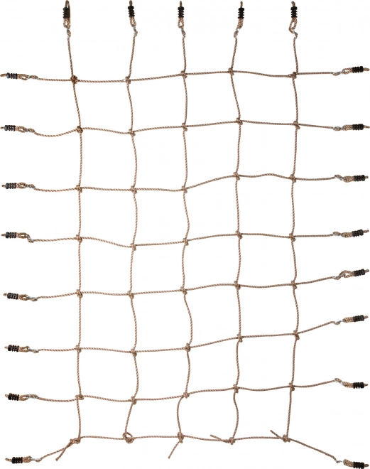 La red de escalada está equipada con abrazaderas de plástico robustas y ojales metálicos que garantizan una fijación fácil y segura.