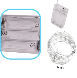 Ilumina tu hogar con un brillo suave gracias a la guirnalda de hilo LED de 5 m y 50 LED en blanco frío. El cable ultrafino se moldea fácilmente y se oculta entre el follaje o las decoraciones. Alimentación por baterías sin depender de un enchufe para iluminar en cualquier lugar: en el árbol, en un jarrón o en un tarro.