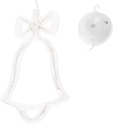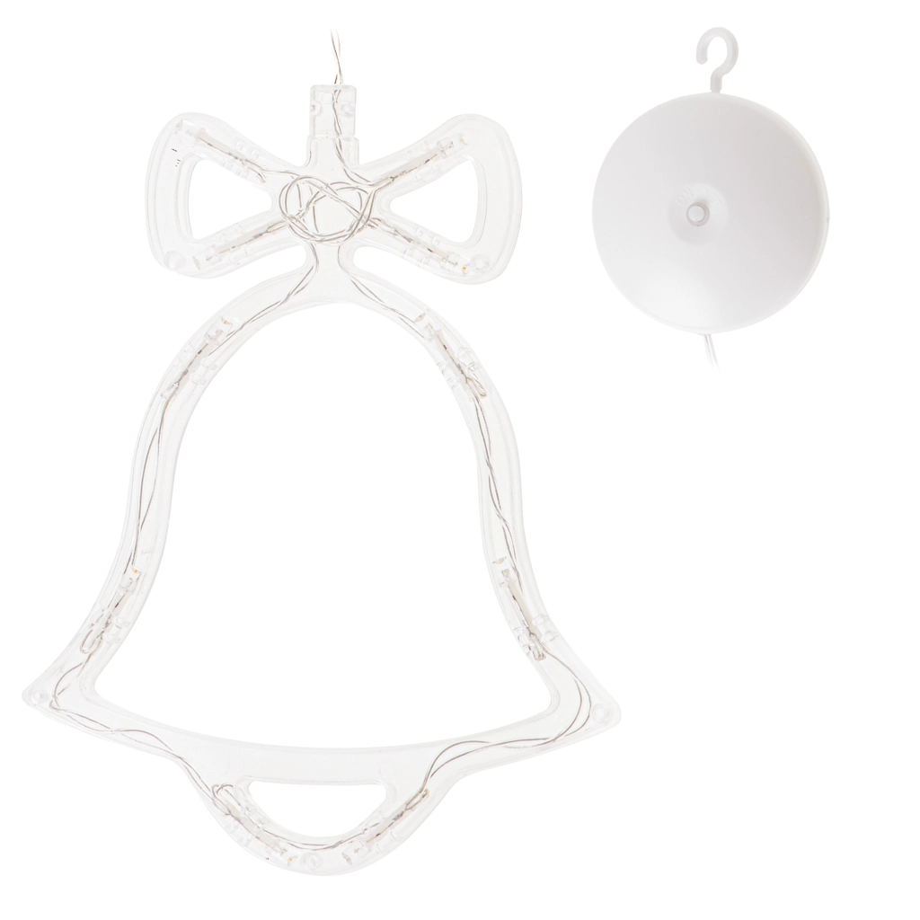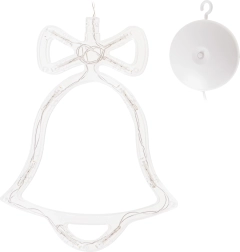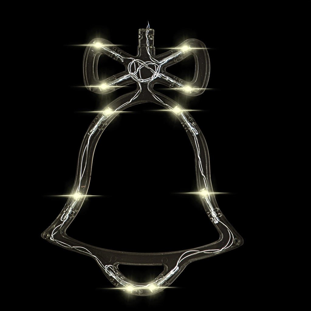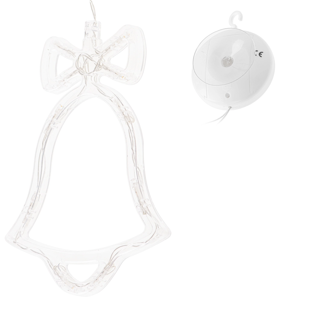 Disfruta de las noches de invierno con una elegante decoración colgante en forma de campanita. Los LED integrados con luz blanca cálida crean un ambiente mágico en tu hogar. Gracias a la alimentación por baterías y a la ventosa, la colocarás fácilmente en la ventana, la puerta o la pared, sin cables y sin complicaciones.