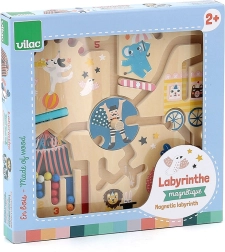 El laberinto magnético VILAC introduce a los niños a partir de 2 años en el mundo del circo con los suaves colores de Michelle Carlslund. Con el lápiz magnético desplazan las bolitas por los recorridos, se encuentran con acróbatas, animales y payasos y, al final, devuelven cada bolita a su lugar correcto según el color y el número. El juego fomenta de manera natural la concentración y la paciencia.