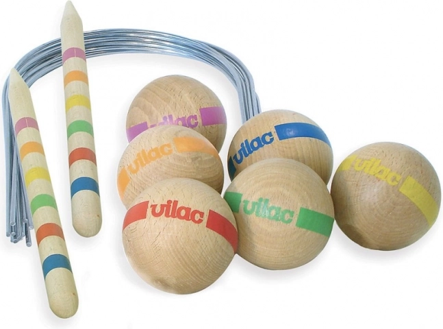 El set está fabricado en madera de haya de alta calidad con superficie lisa para un agarre cómodo, los arcos metálicos garantizan estabilidad en el terreno y la bolsa textil con cremallera permite un transporte y almacenamiento sencillos. La cuidada fabricación en Francia es garantía de acabado preciso y larga durabilidad.