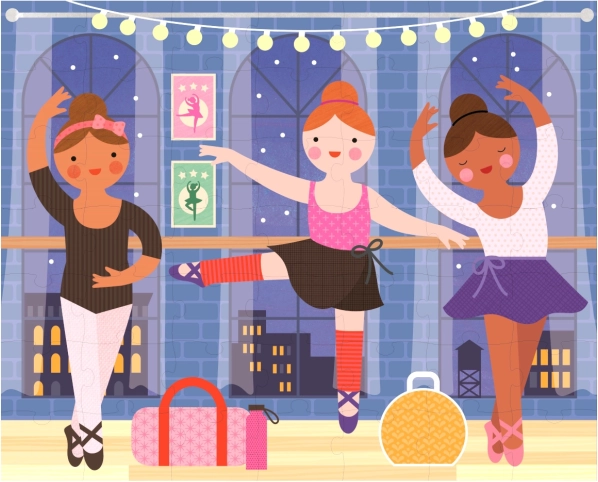 El rompecabezas con bailarinas motiva a los niños a practicar la paciencia y desarrolla la coordinación ojo–mano y la percepción del color.