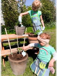 - Delantal, guantes, 4 piezas de herramientas (pala, rastrillo, palita, horquilla)