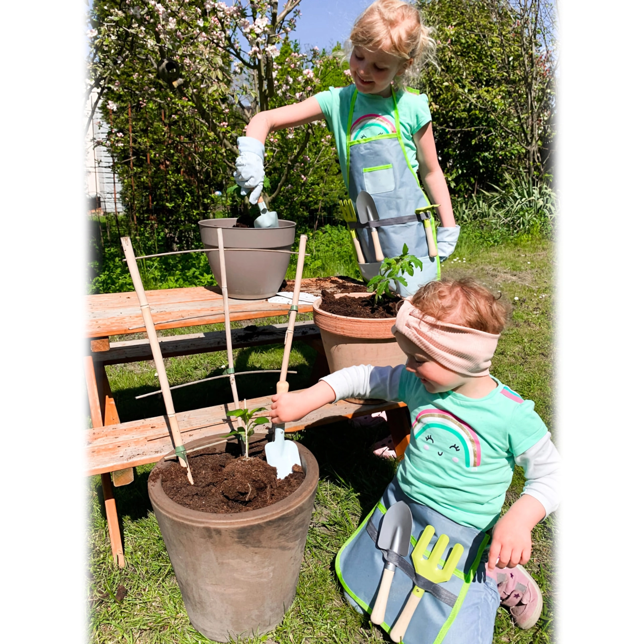 Este ingenioso set combina una riñonera cómoda con herramientas prácticas para que los niños puedan plantar, airear y transportar tierra con facilidad. Herramientas metálicas con bordes lisos y mangos de madera adaptados a manos pequeñas, resistentes incluso al ritmo entusiasta de los niños. La riñonera con cinturón ajustable mantiene las herramientas a mano y permite un movimiento libre y seguro.