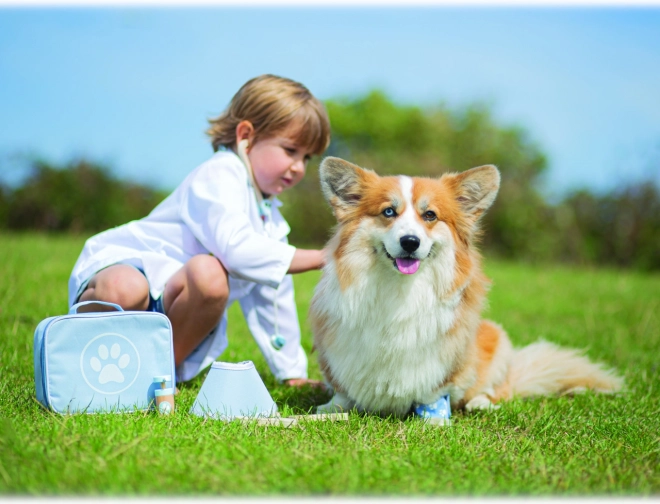 Los niños aprenden a cuidar a sus “pacientes”, desarrollan habilidades de comunicación y entrenan la imaginación en el papel de un pequeño veterinario en casa y de viaje.