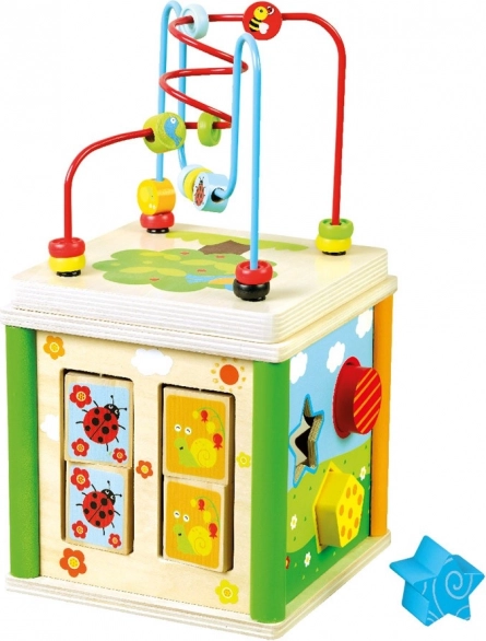 Gracias a sus diferentes actividades, los niños practican de forma lúdica el razonamiento lógico, la concentración y la creatividad. El cubo está hecho de resistente madera y cuenta con elementos de metal, por lo que resiste el descubrimiento diario de los más pequeños.